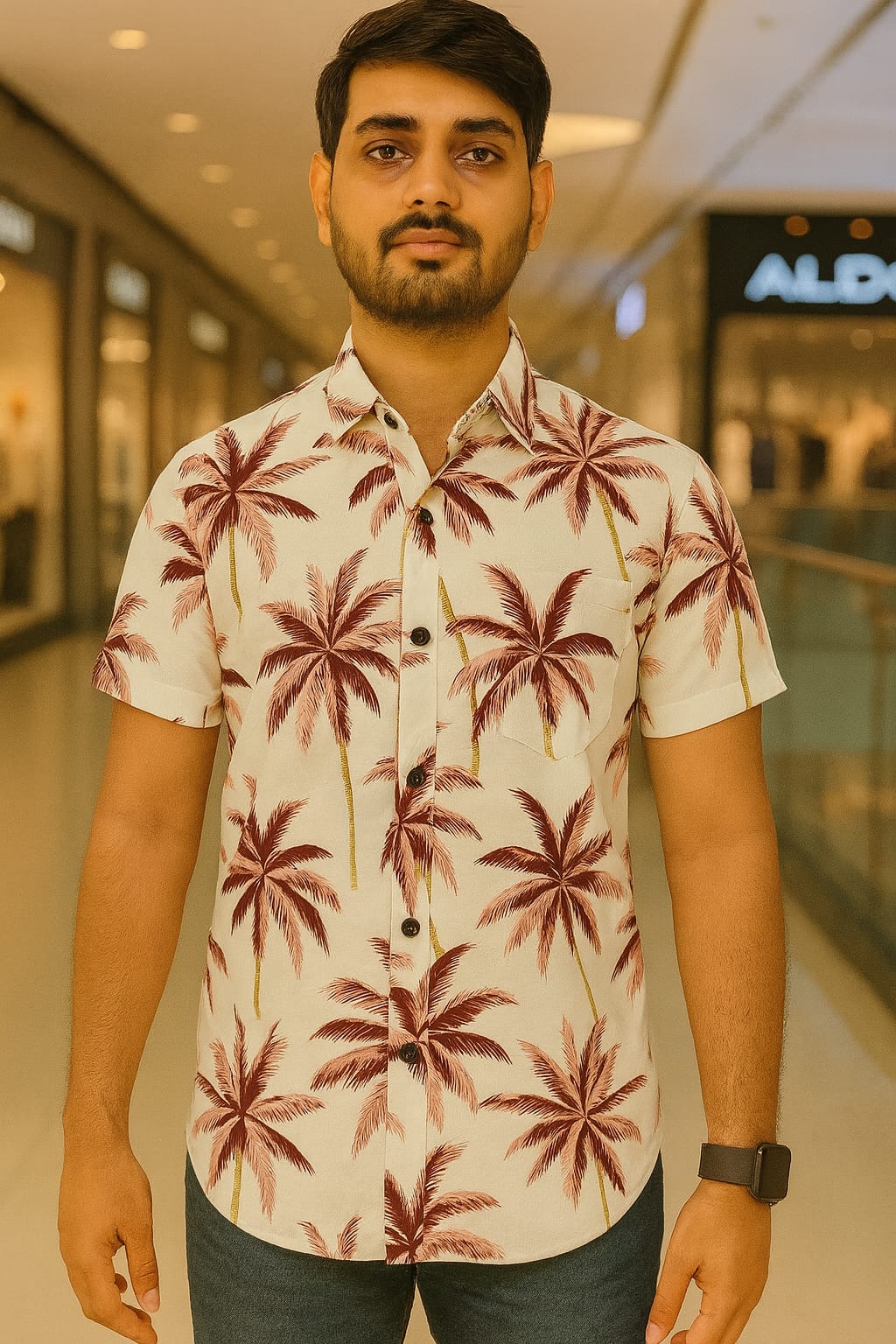 White coffee paid flower half sleeve shirt