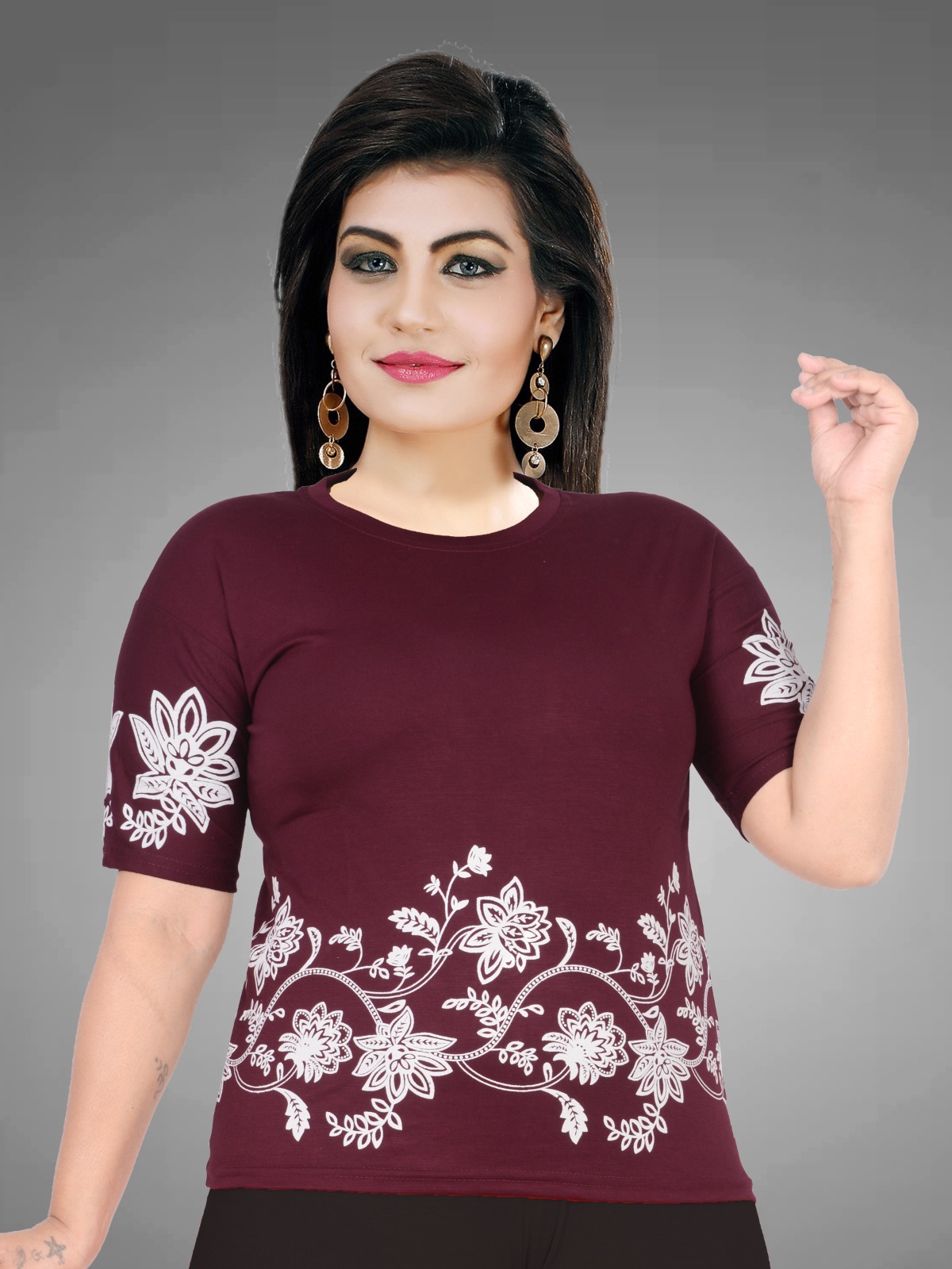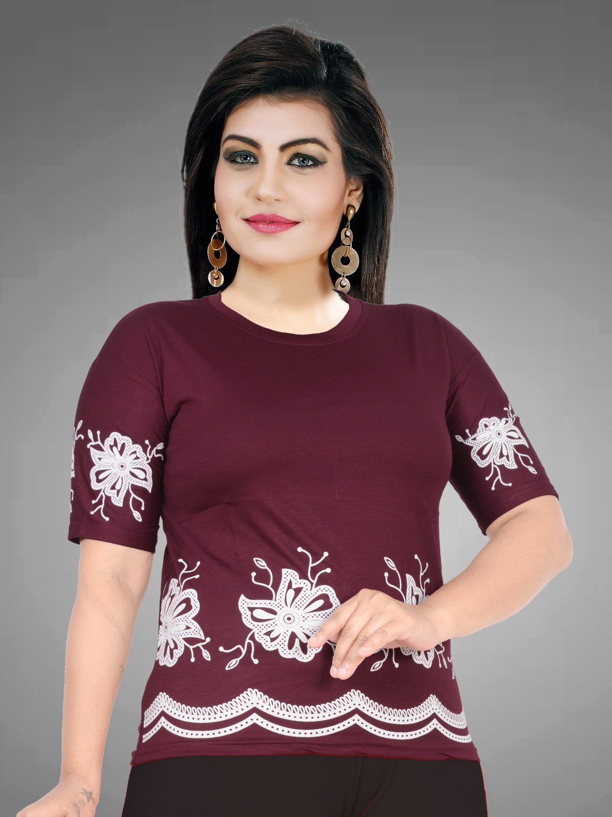 Maroon women printed t-shirt