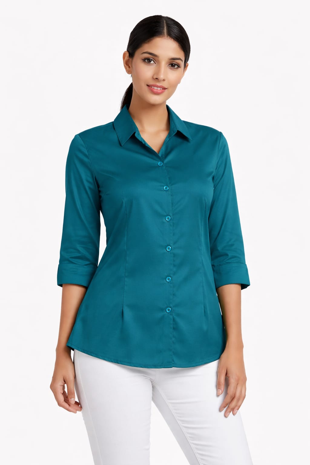 Formal Girl's peacock Blue collar shirt