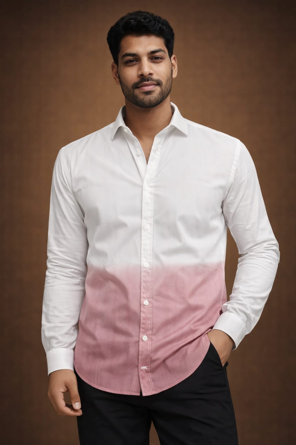 White and pink double tone color casual shirt men