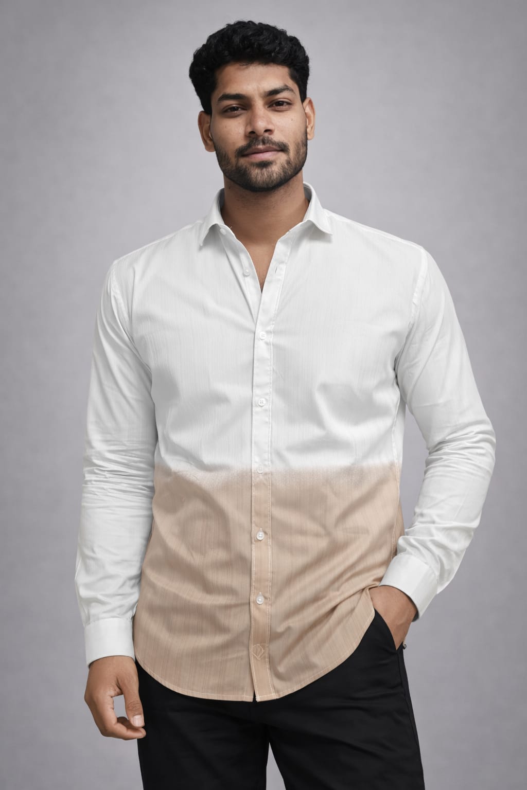 White and brown double tone color casual shirt me