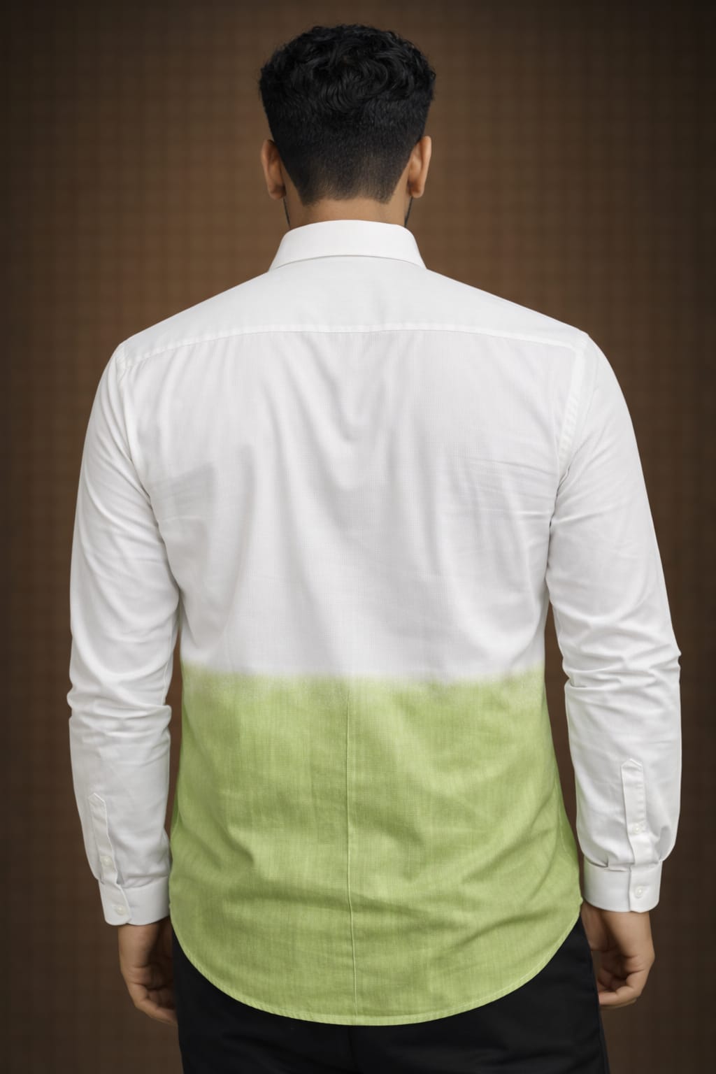 White and Olive Green double tone color casual shi