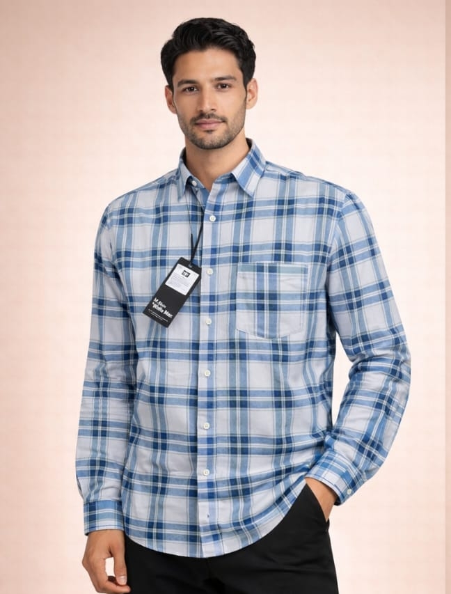 White and blue box shirt men s