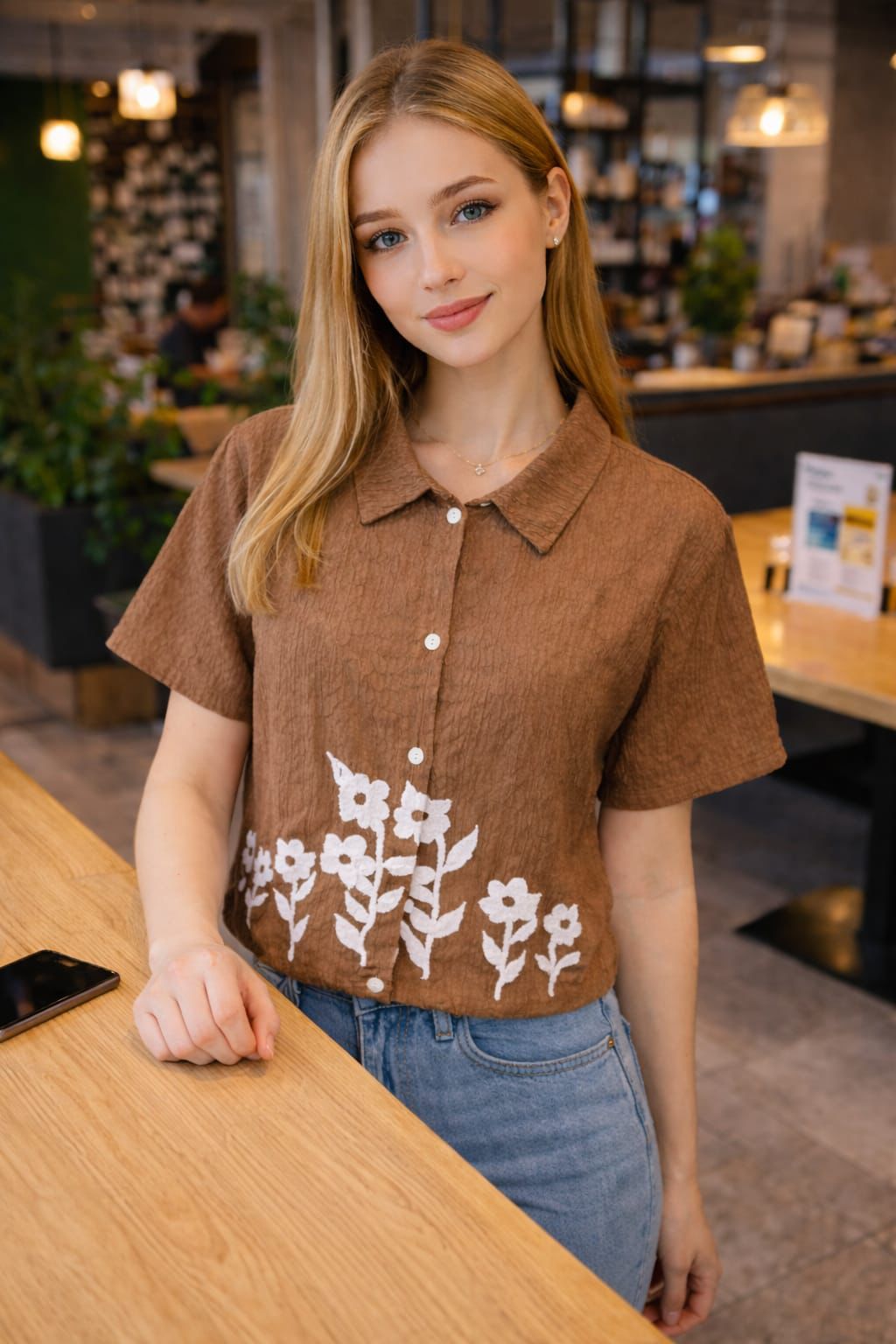 Brown flower Casual top