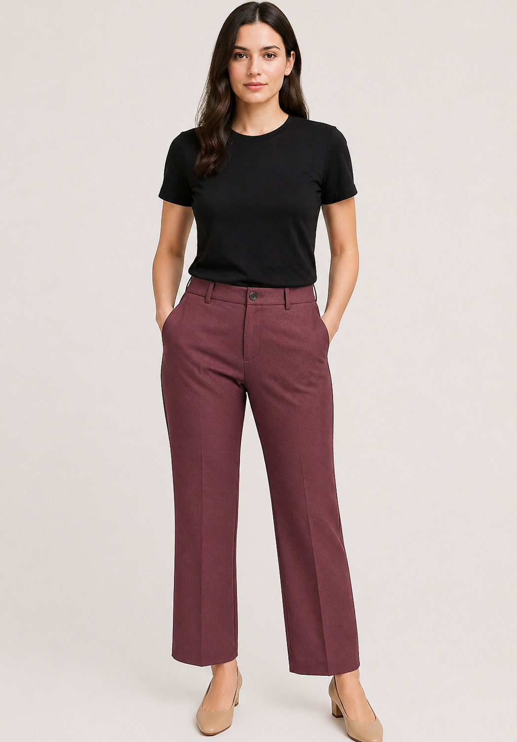 Maroon stretchable formal pant women